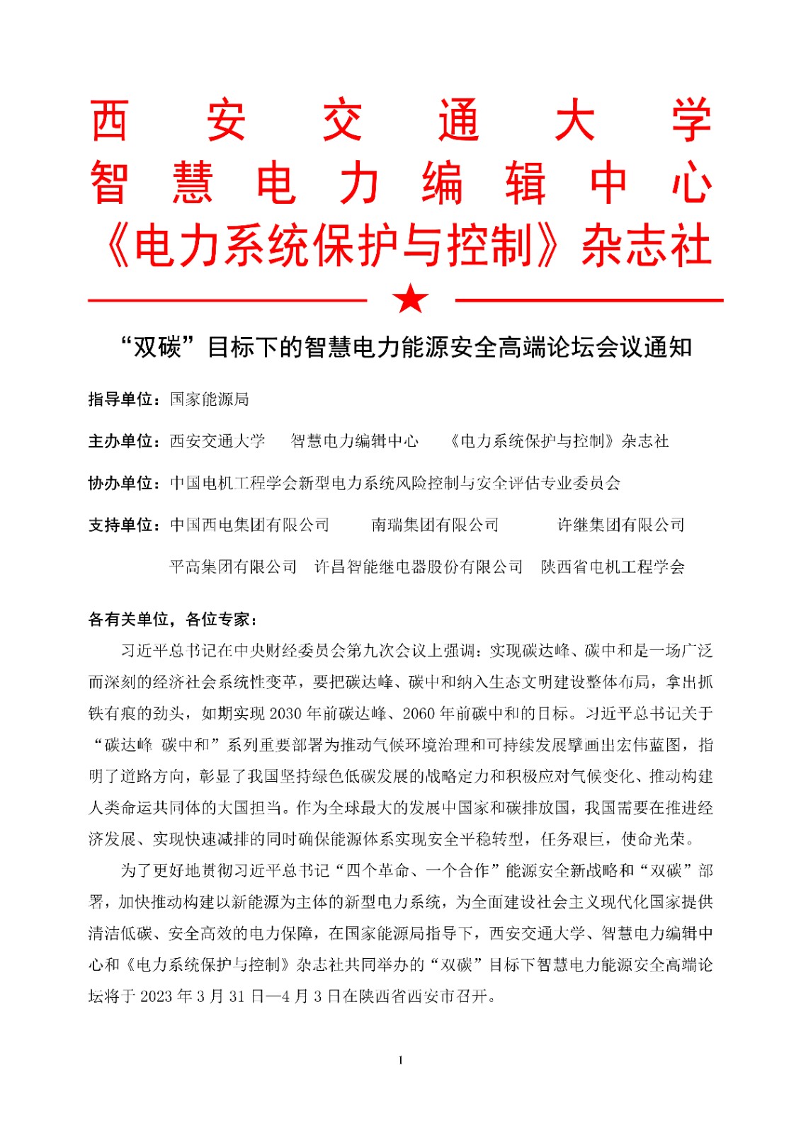 “双碳”目标下的智慧电力能源安全高端论坛会议通知