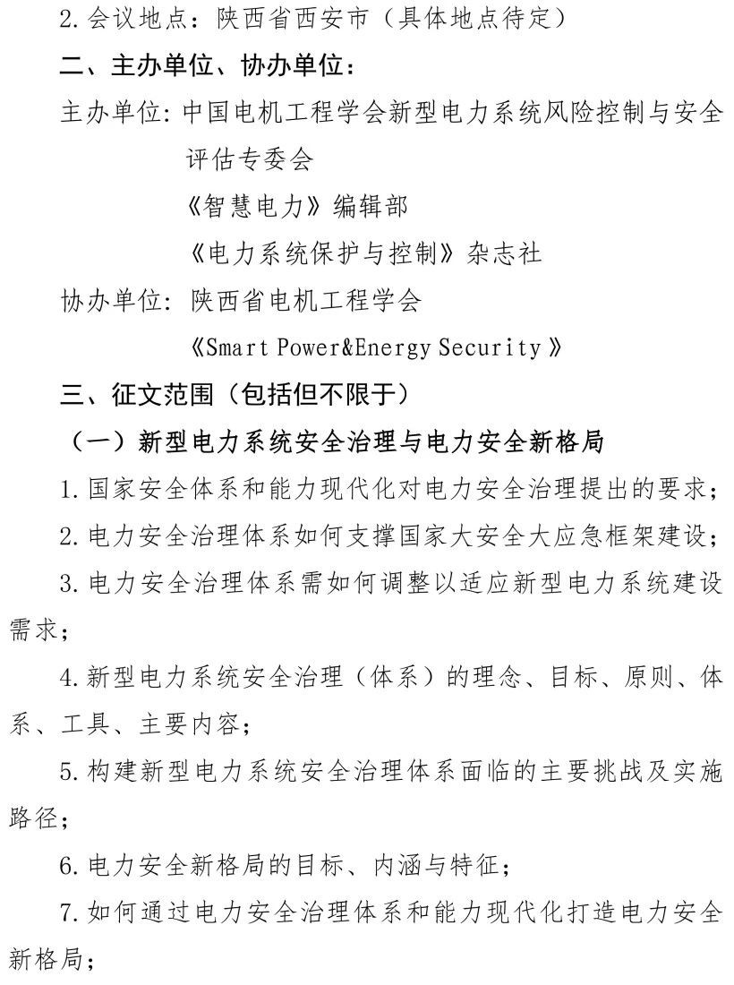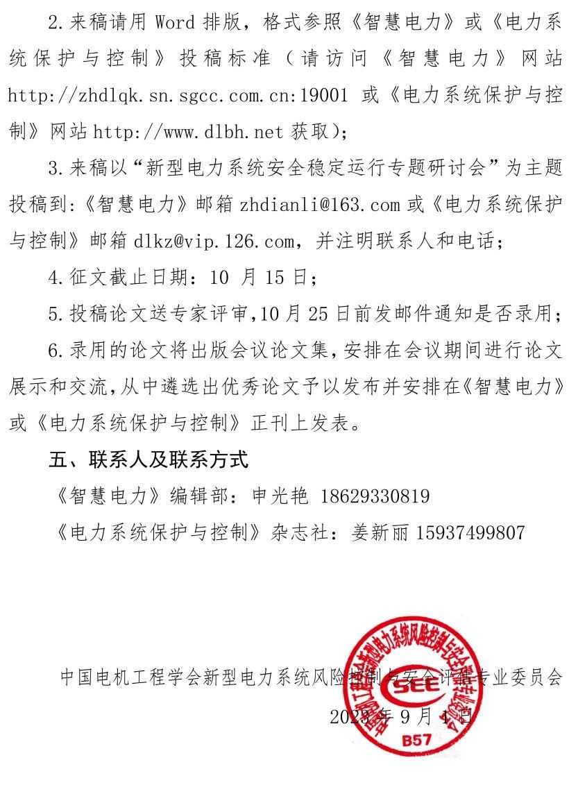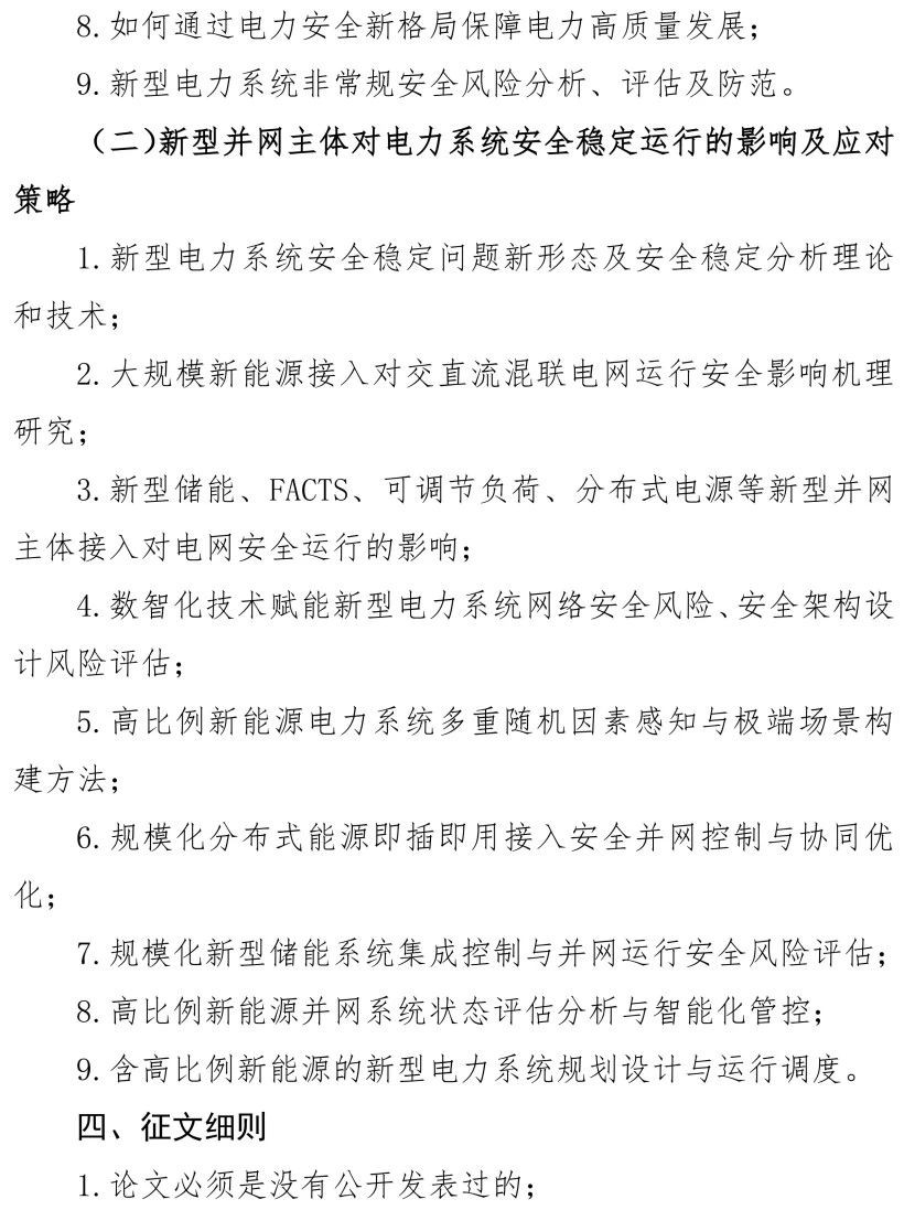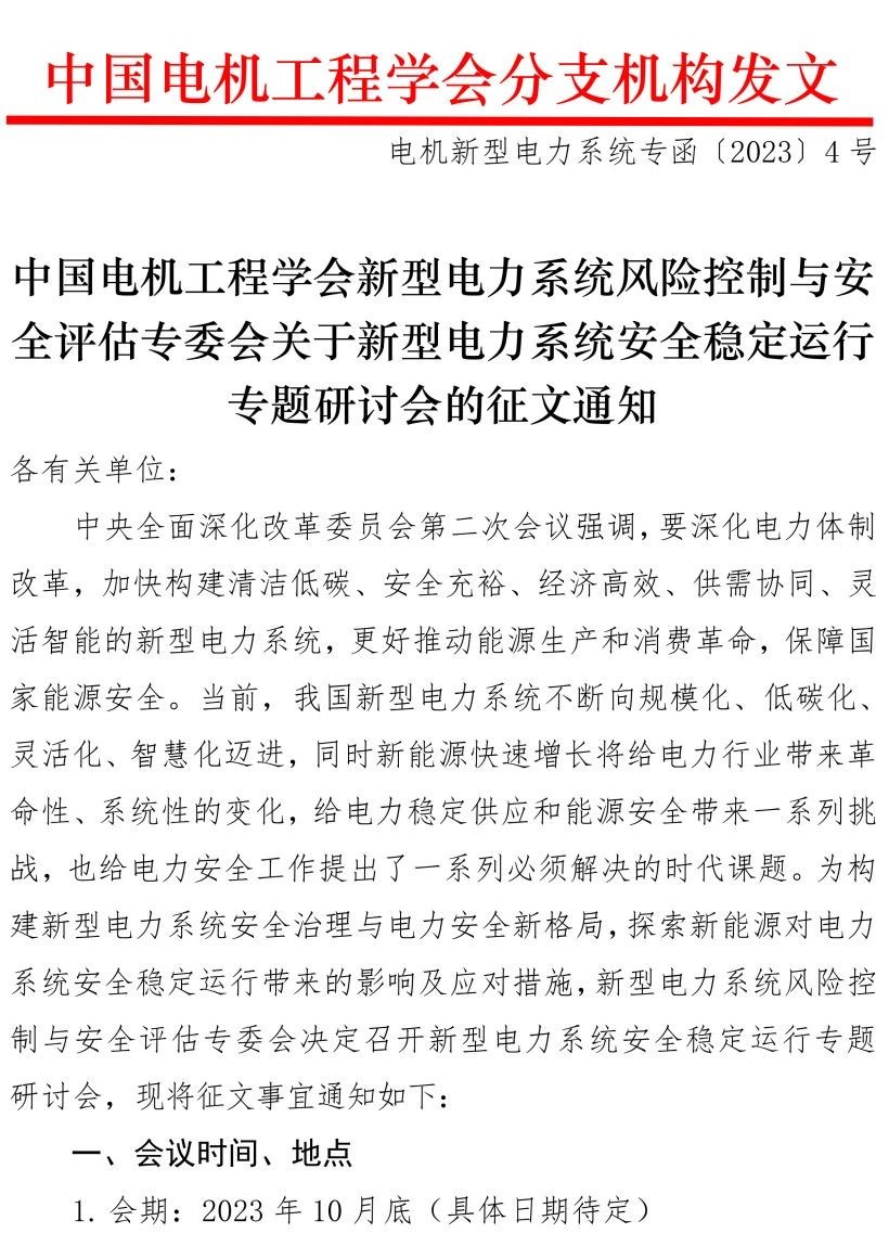 关于新型电力系统安全稳定运行专题研讨会的征文通知