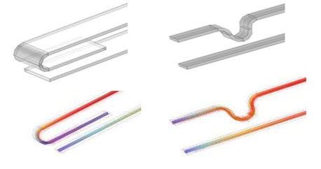 如图2所示,磁芯由一条带有气隙的高磁导率材料制成,两根导线并排放置在磁芯包围的内部, 其中一根导线通入+30A的电流,另一根导线通入-30A的电流,如上图所示,在磁芯气隙处的磁场高达11mT,使剩余电流测量几乎不可能。而磁芯本体如图所示产生的磁场达到700mT。这对于某些磁性材料来说可能是一种接近饱和的情况,因此直接采用并排导线这种原边配置的方式将导致传感器线性度降低且质量非常差。