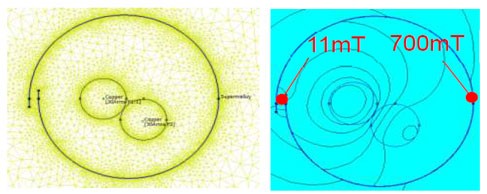 (蓝色表示磁场场强较小,红色表示磁场场强较大)
