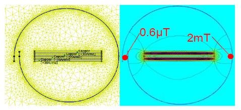 图3 基于原边电流采用PCB结构的共模信号磁场模拟