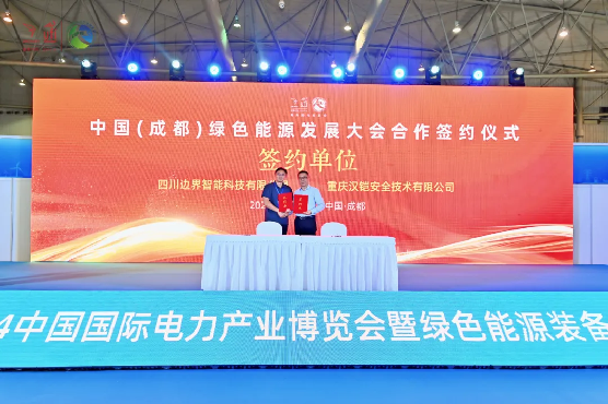 展会现场喜讯不断!成都坤能环保设备有限公司与四川连冠印务有限公司签署了工厂降温设备合作协议,四川边界智能科技有限公司与重庆汉铠安全技术有限公司签署了经销代理合作协议。
