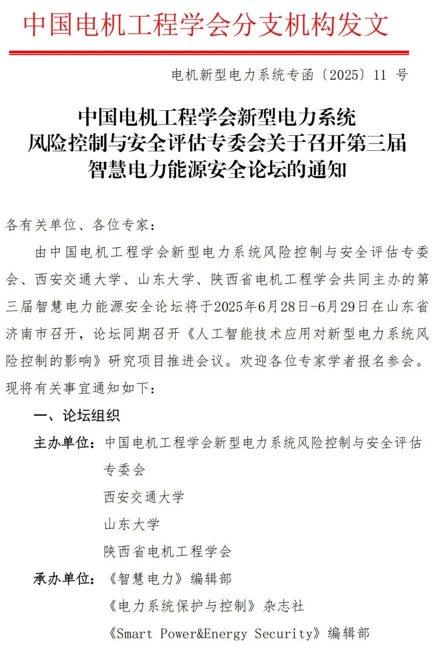 第三届智慧电力能源安全论坛会议通知